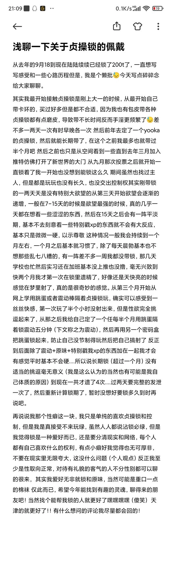 一些想说的话,很认真的 希望大家可以看完 #贞操锁