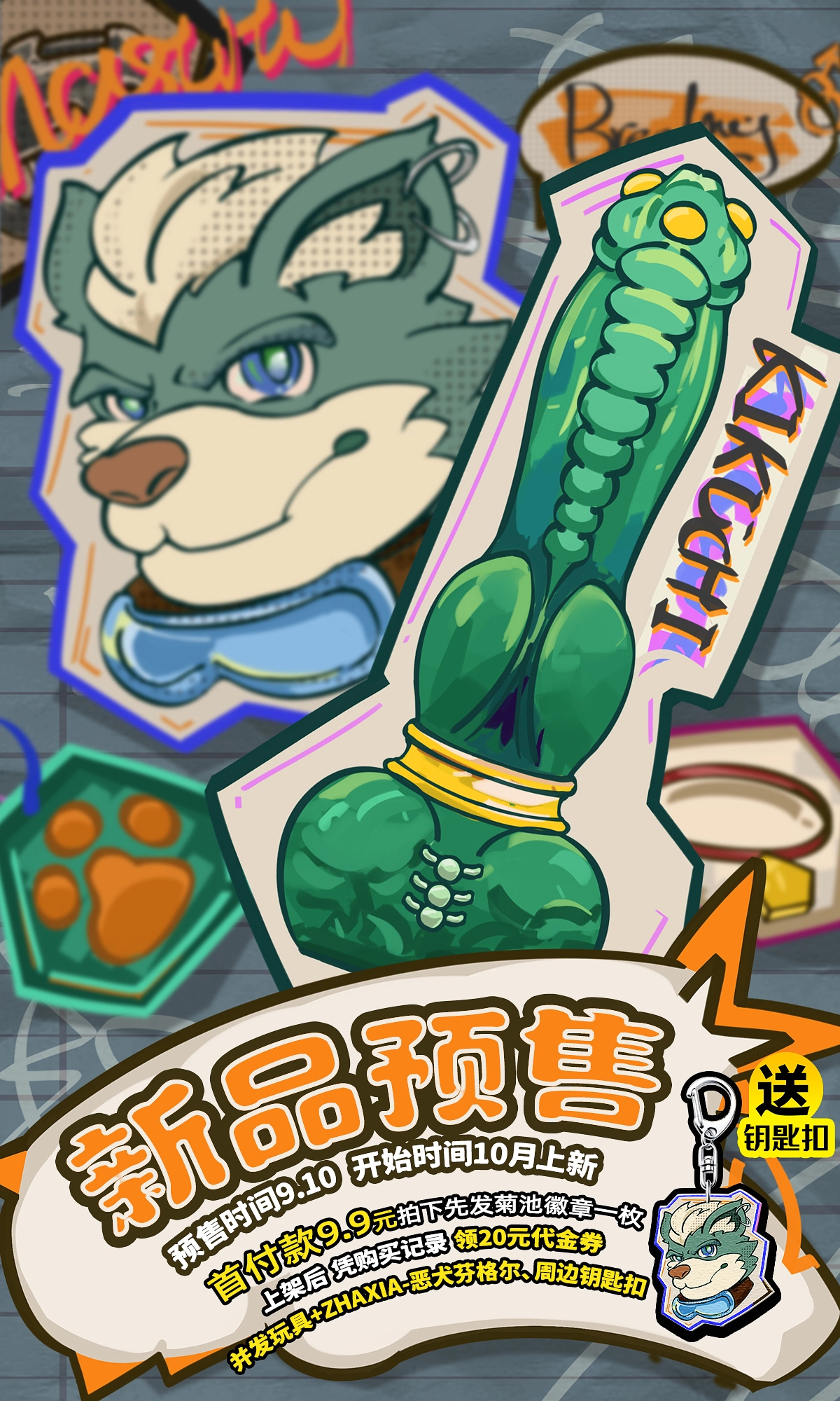菊池新品【恶犬-芬里尔】 🔜这次的新玩具与漫画师炸虾跨界联名 天马行空的创意狗吊创意 加上菊池玩具制作经验 【恶犬】做到了有颜又实用 现在开启预售 9.10-9.30 9.9元 先来店铺领菊池徽章与20元优惠券 关注+转发 评论区抽10位小伙伴免费体验 画师;@Hy_230410