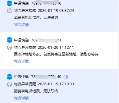 最近发了一大批货,很多小伙伴的电话快递都打不通,大家可进入订单详情页看一下