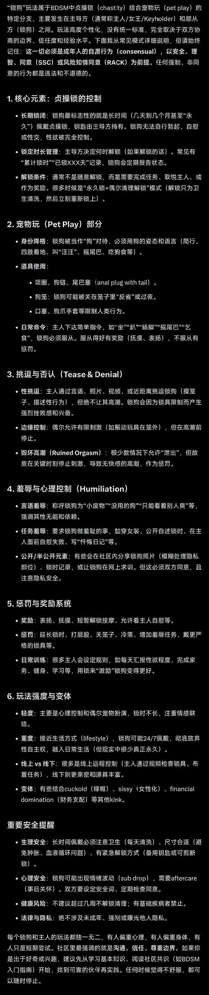 🔞18+ BDSM教育 想尝试宠物扮演、贞操锁、Tease & Denial、Ruined高潮? 这份基于SSC & RACK的完整指南,覆盖控制时长、道具、边缘玩法、aftercare、随时撤回同意等 一切以完全知情同意为前提,不适随时停止! #BDSM #BDSM教育 #PetPlay #Chastity #TeaseAndDenial #aftercare #安全共识