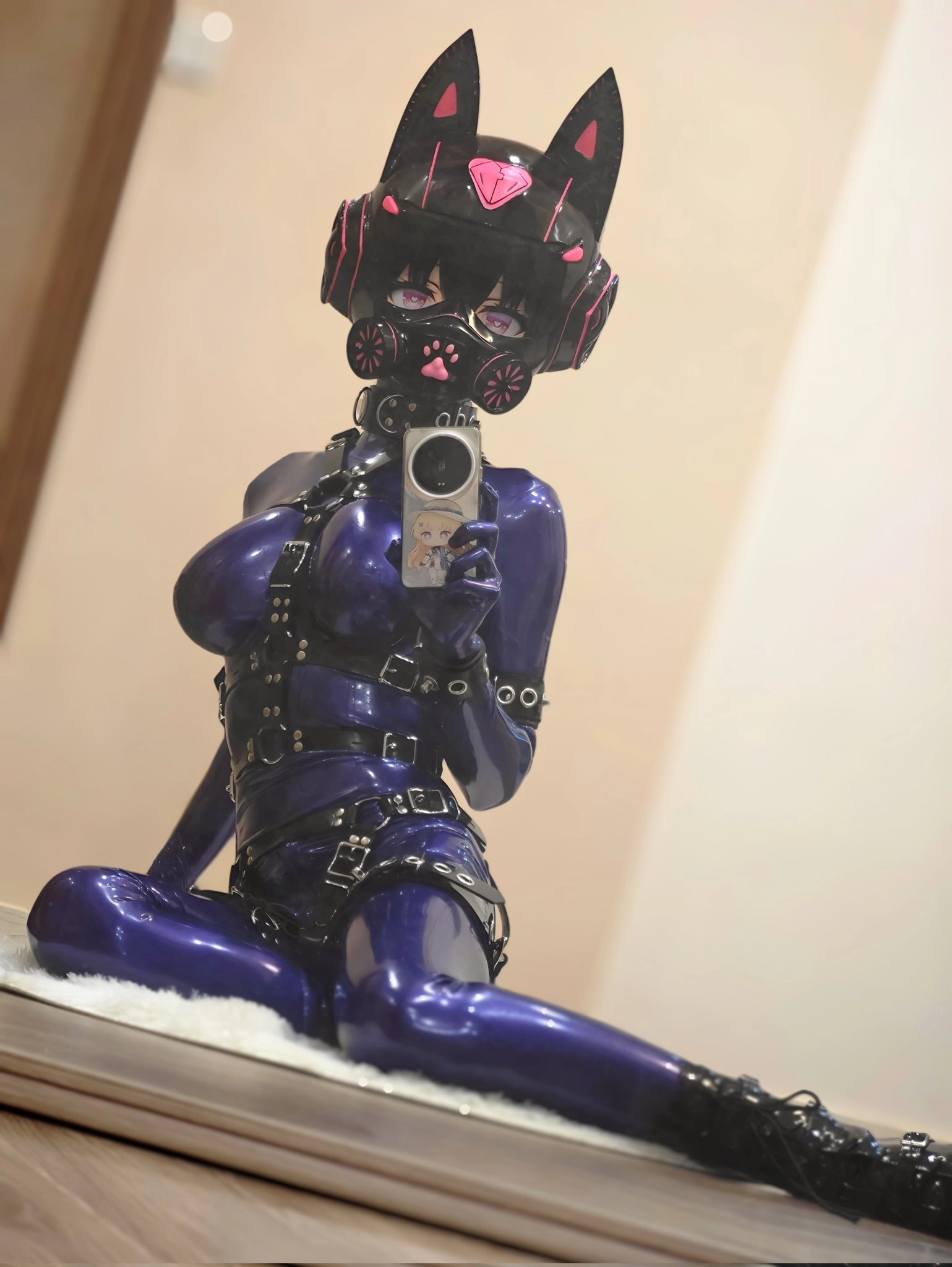 喜欢被紧紧地包裹束缚,闪亮发光的“皮肤”和本体真正的皮肤之间连空气都所剩无几。看着镜子里自己的背身,享受着层层加码的绑带...可惜不能永远这样😭 #kigurumi #latex