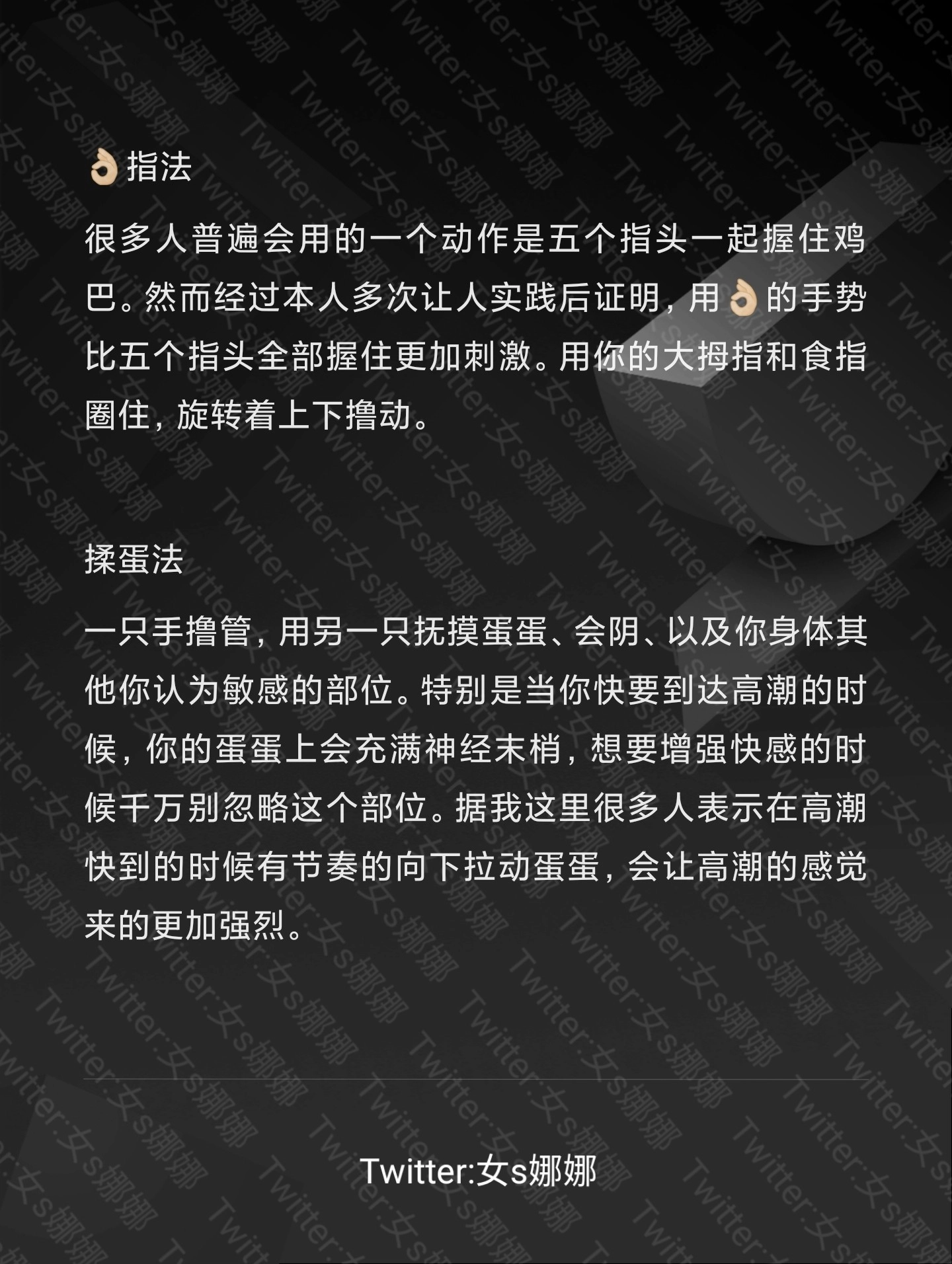 总结了7个射精撸管方面的实用技巧,先放出前2个,后面5个通过点赞+转推+评论的方式获取,完成上述三步之后私信发发送你的QQ邮箱,我会把教程发到邮箱里,人人有份(只发QQ邮箱,其他一概不发) #网调 #调教 #第四爱 #龟头责 #前列腺高潮 #女s #榨精