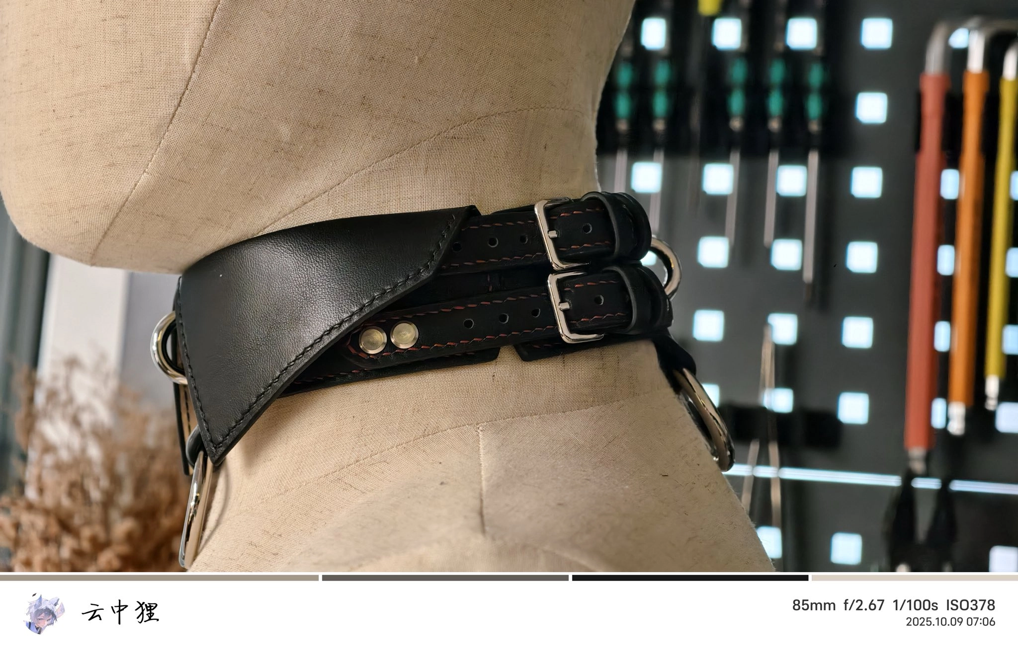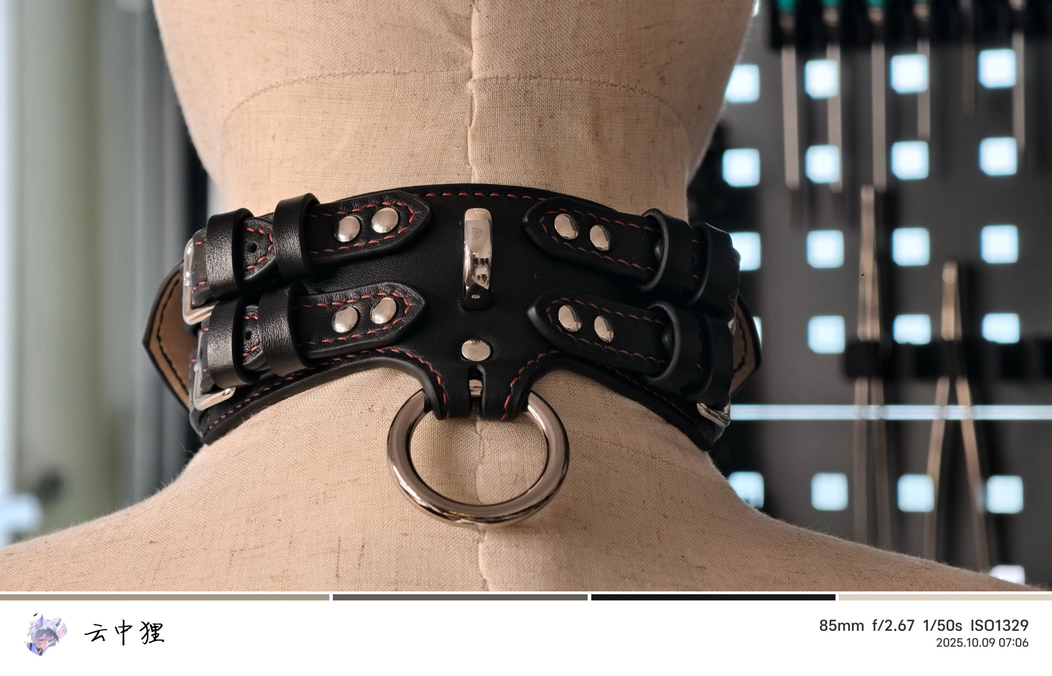 新品哦~ 配套的全身拘束皮衣暂不放出。 整条项圈采用了小羊皮、铬鞣头层牛皮、植鞣牛皮三种材料,内夹超纤+塔林,极限承重预测超过300kg,几乎不会变形。 十分想要独占,不打算上架。
