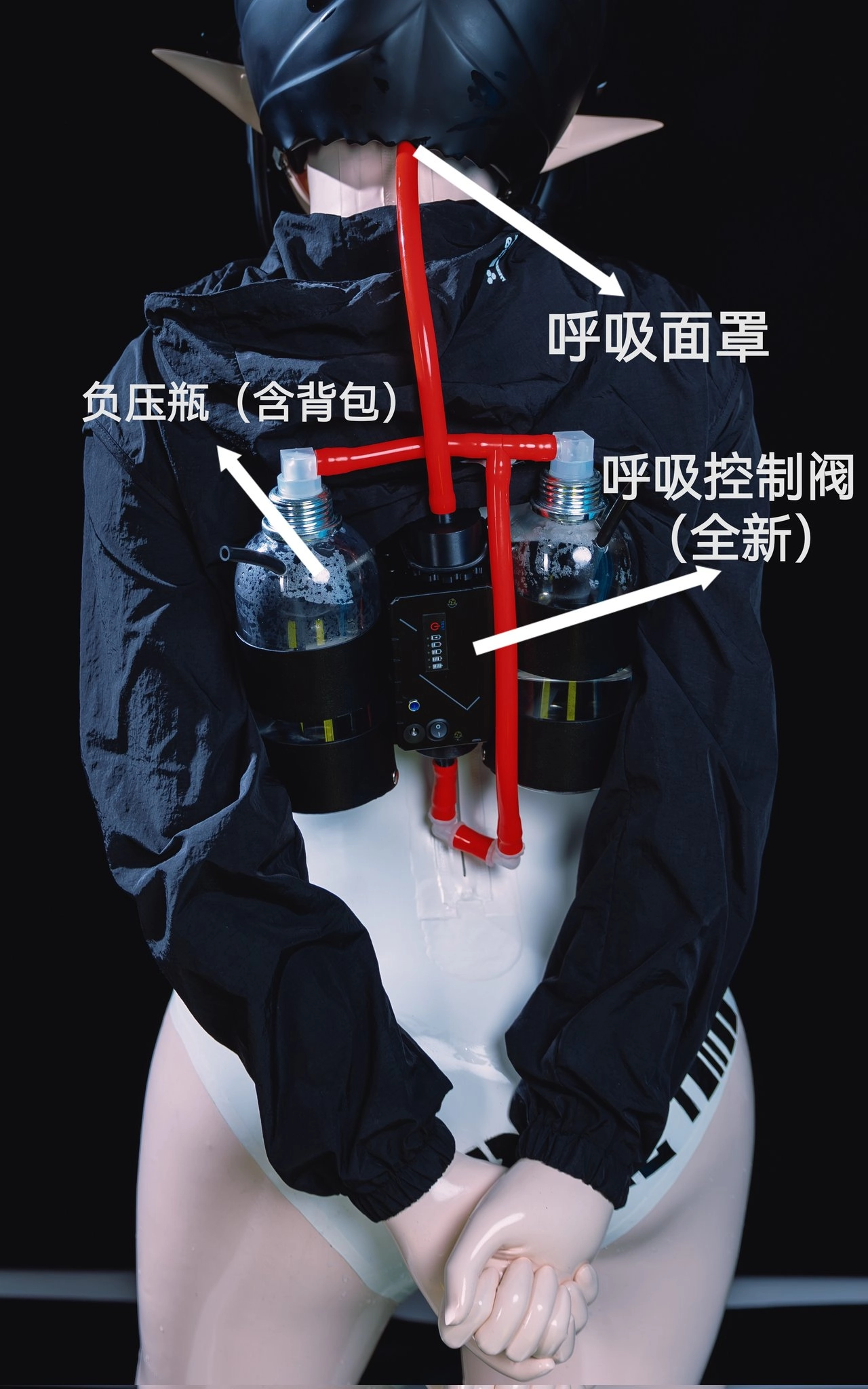 ↓搞个粉丝福利↓ 在评论区留下你的一张涩图就可以获得抽取以下呼吸控制套装的机会哦 *遥控气阀在某之K后续的跟进下已经解决漏气问题* *视频中使用者还是嬉皮笑脸的烧娃汐妈*