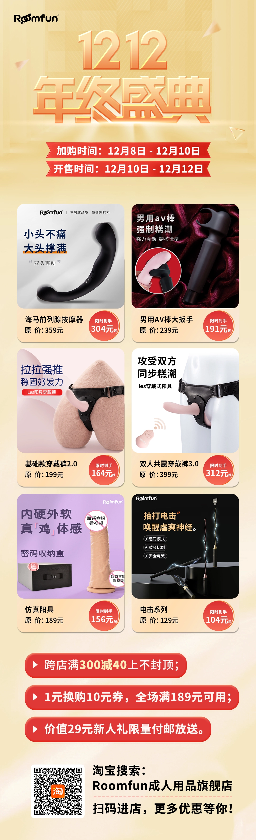 小房终于2w粉啦,恰巧碰上双12,那就浅做个小活动!·关注我+转这条推,抽【2个房趣锦鲤名额】,12.12开 抽中锦鲤名额的宝子,店里所有产品任意挑!!(ps:除大道具之外) 还有双12期间,店铺满¥68减¥5的优惠券,记得领! s.tb.cn/c.0FjJ8X 赶紧来评论许愿吧~