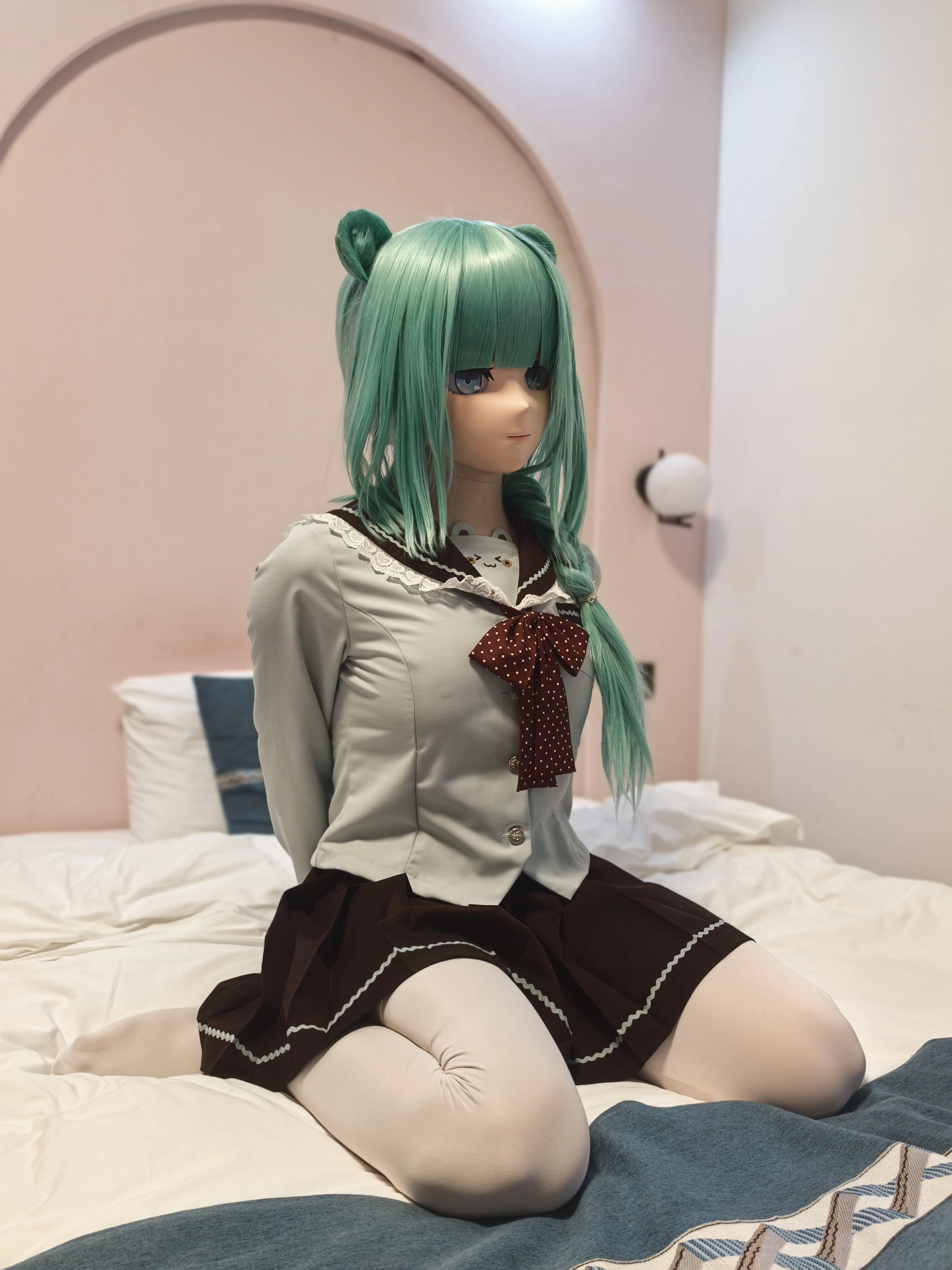 ⬅️:端端正正的坐着喵~ ➡️:被推到了,漏出了奇奇怪怪的东西 (平板锁是对的😋) #kigurumi #着ぐるみ